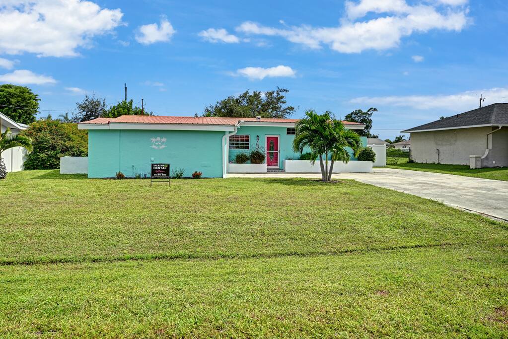 Fully RENOVATED and fresh, fun paint! Enjoy a relaxing stay at this family and small-pet friendly home! Nestled in the lovely Yacht Club area with public beach access 1.4 miles away! A 2 min drive to downtown Cape and ample dining/shopping! Also a 2 min drive to Cape Bridge connecting to Fort Myers! Sanibel/Captiva Islands a short trip. Open floor plan inside plus a large lanai, private heated pool, and canal water views! Boutique level hosts. Escape and get tropical at Belle's Tropic Spot!