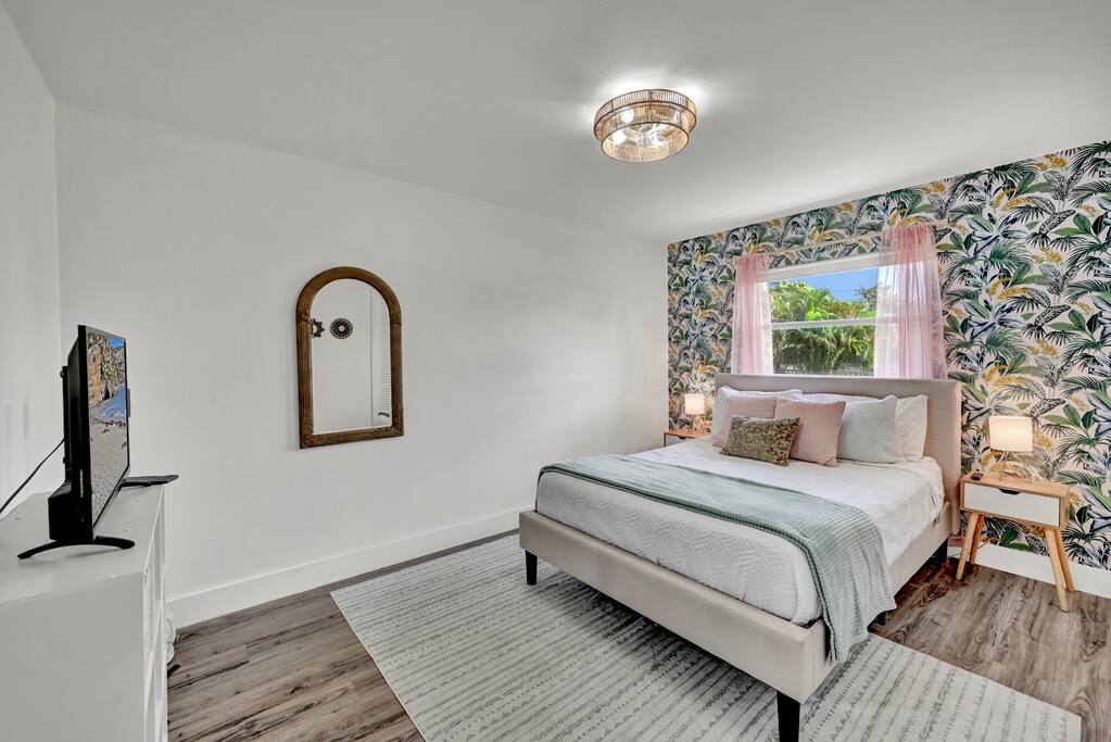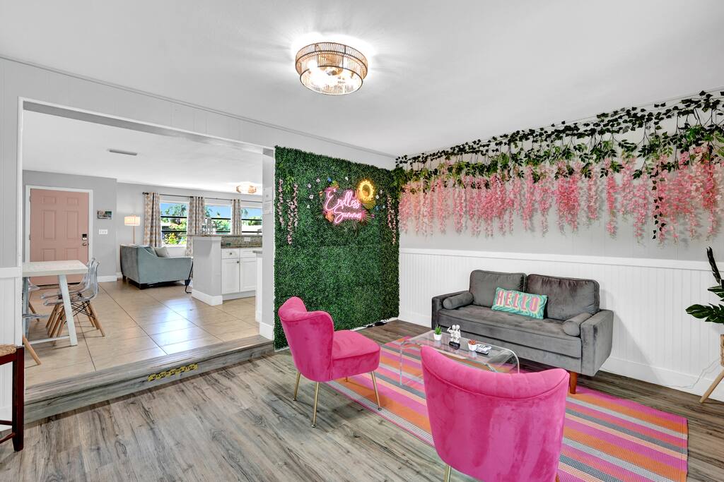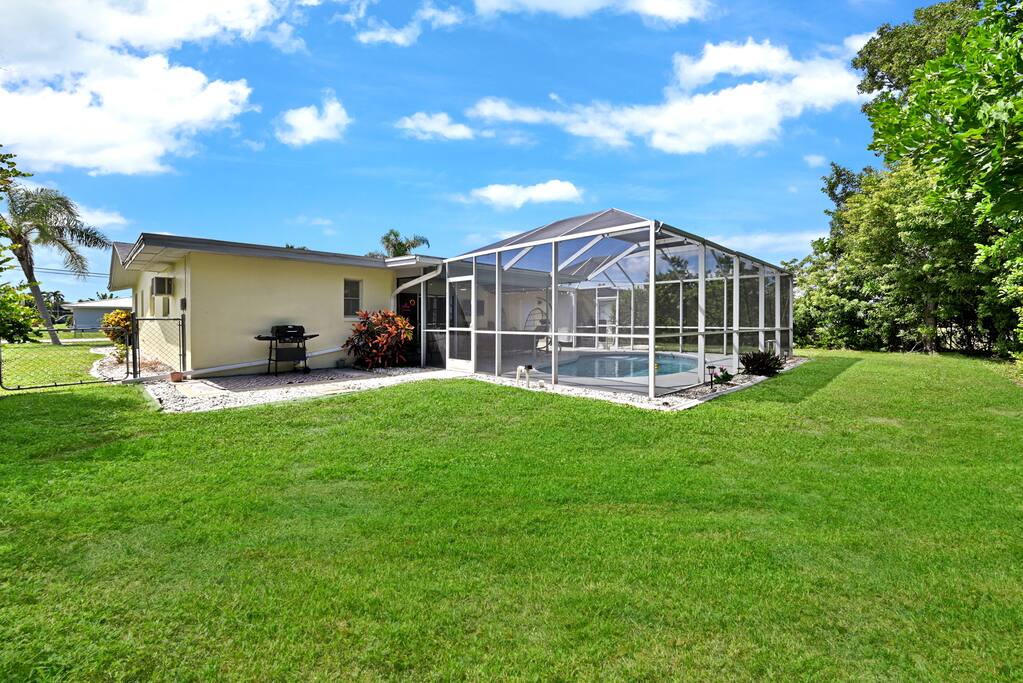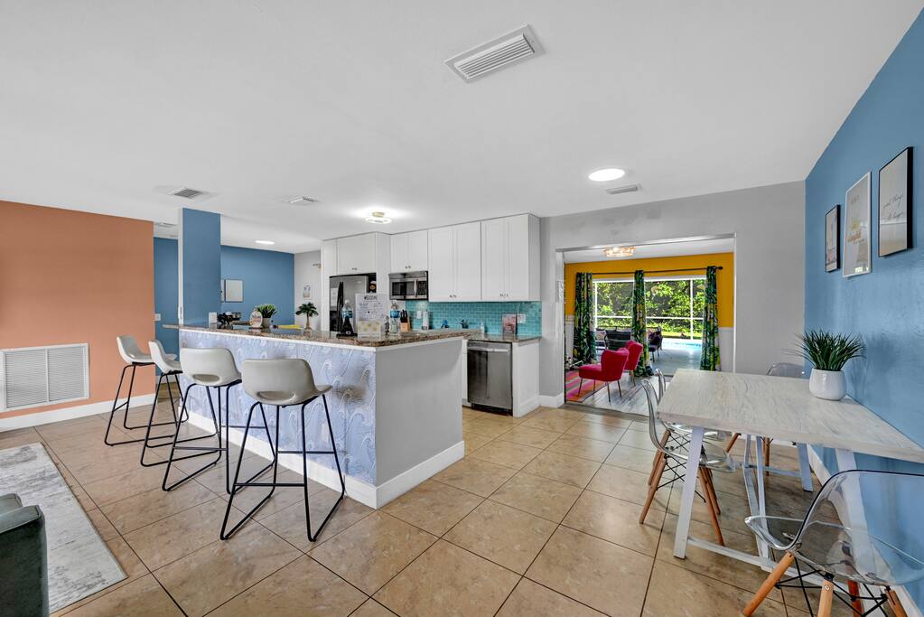 Located in the quiet coastal style neighborhood near the popular Yacht Club and beach Sunnybelle is in an excellent area for walking, jogging, and enjoying the SWFL views! It boasts the best location with everything closeby yet tucked away from traffic and noise! The house welcomes guests with tons of natural light and a front door view to the pool as you enter! Views of the famous Cape Coral canals are just out the front window as well. The spacious interior includes 3 Bedrooms, 2 Full Baths (1 with tub), and an open concept living and kitchen area complete with a raised bar and coffee nook. A bonus space is located just off the kitchen to allow more indoor seating and a fun photo backdrop wall! A laundry room with washer and dryer is available for guest convenience. Outside you can enjoy the FL sun on the large covered lanai. The outdoor space has ample seating, Smart TV, lounge chairs, and a grilling patio with gas grill. This home truly has the classic and colorful Cape vibe with modern updates for comfort.